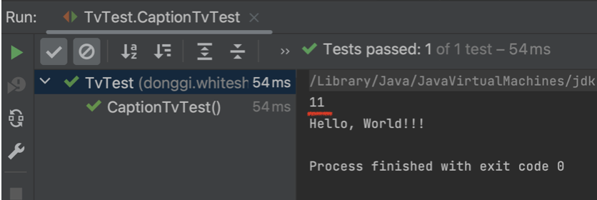 - channel의 값을 10으로 할당해주고, channelUp() 메서드를 호출하여 channel의 값이 변경되는지 출력하여 channelUp() 메서드를 통해 1이 증가한 11이 출력되는 걸 볼 수 있습니다.